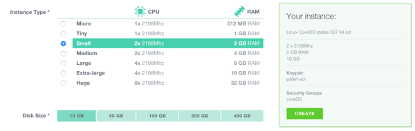 To launch a Small 2GB instance with the current Stable Flatcar Container Linux image: